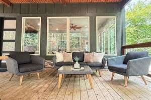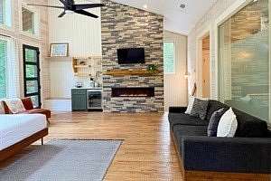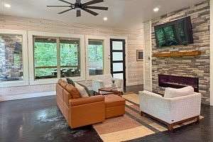 An exquisite luxury retreat that redefines upscale relaxation in the very heart of Hochatown, Oklahoma's premier destination for nature-infused escapes. This expansive 2-bedroom, 2-bathroom modern masterpiece spans over 1,700 square feet of elegantly appointed indoor living space, seamlessly blending sophisticated design with warm, inviting comfort. Nestled on generous private acreage amid the rolling hills and lush forests, the property offers an unparalleled sense of seclusion and serenity-while remaining perfectly central to everything Hochatown has to offer. Just moments from world-class attractions like Beavers Bend State Park, Broken Bow Lake, thrilling adventures, fine dining, wineries, distilleries, and boutique experiences, you're ideally positioned to explore it all without ever feeling far from your luxurious home base. Step inside to an open-concept grand living area, where a fully equipped gourmet kitchen with high-end appliances flows effortlessly into a spacious, light-drenched seating lounge. Towering windows frame breathtaking views of the surrounding woodlands, flooding the space with natural light and a profound connection to nature. Ascend to the breathtaking master suite, a true sanctuary featuring a plush king bed, additional twin pull-out sleeper, an indulgent soaker tub, a luxurious dual-head rain shower, a private balcony ideal for stargazing under clear Oklahoma skies, and a dedicated coffee bar complete with wine fridge for those leisurely, pampered mornings. Connected via a charming breezeway, the second private suite boasts its own king bed and full bath, while a cozy loft above provides a full-size bed-offering flexible, spacious accommodations for couples, families, or groups seeking privacy and comfort. Outside, the expansive grounds truly elevate the experience. Revel in multiple expansive decks perfect for morning coffee or evening cocktails, a premium hot tub for soaking under the stars, a crackling fire pit for gathering around with loved ones, and vast open land that invites exploration, wildlife viewing, and peaceful immersion in the Ouachita Mountains' natural beauty. Ample space ensures privacy and tranquility-no close neighbors in sight-making it an idyllic spot for romantic getaways, girls' weekends, family reunions, or simply unwinding in style. Best of all, Olive You Cabin is proudly dog-friendly, so your beloved furry companion can join in the luxury and adventure. Discover why discerning guests choose Olive You: unmatched elegance, generous space, prime central location, and expansive private land that delivers the ultimate Hochatown retreat. Your dream escape awaits!