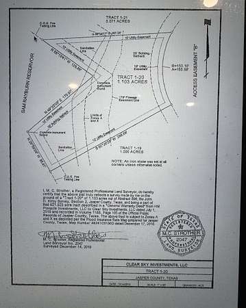 Tract 1-20 of 1.103 acres out of Abstract 896, the JohnKirby Survey, Section 2, Jasper County Texas