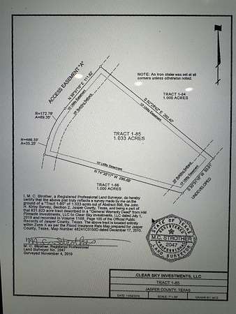 1.033 acres of land out of Abstract 896, the John H. Kirby Survey, Section 2, Jasper County, Texas