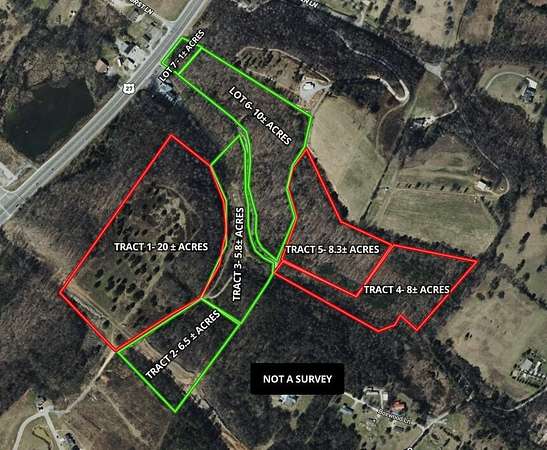 If you're looking for a wooded, secluded tract with ridge top build sites, this Tract 4- 8 +/- acres located just off of Brookstone Heights Lane may be worth a visit! Being part of a larger land holding, Tract 4 could be expanded by purchasing other adjacent tracts on the map, giving you more a footprint for that homestead you've always talked about. City water, sewer and power is in the works to be ran adjacent to this tract. This tract has tons of whitetail deer and wild turkey. Schedule your visit to the property and see what Tract 4 has to offer!