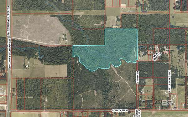 69 acres of unzoned land featuring a natural branch running through the property. Conveniently located just one mile from Baldwin Beach Express, off from County Road 38, at the end of Brown Lane. The property has great potential building sites, with utilities available along the road. Amazing opportunity for private country living while remaining close to everyday conveniences. Approximately 15 minutes to Foley, 30 minutes to Mobile or Gulf Shores, and 40 minutes to Pensacola. Owner financing is available, terms and conditions depend on down payment. Buyer to verify all information during due diligence.
