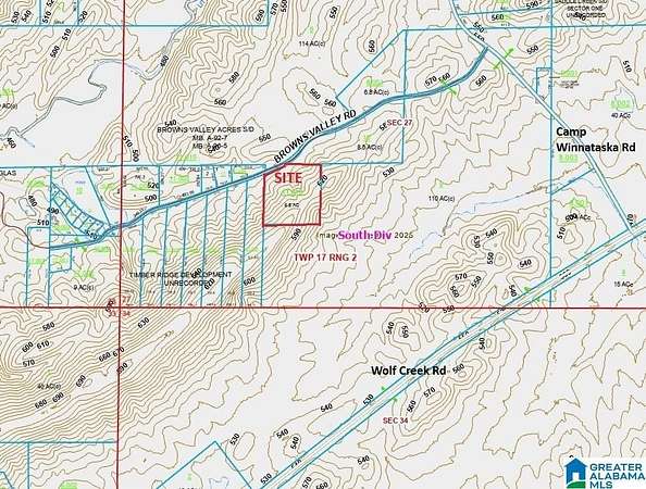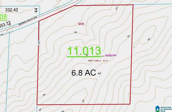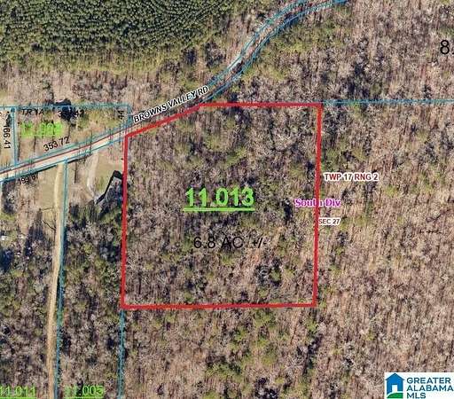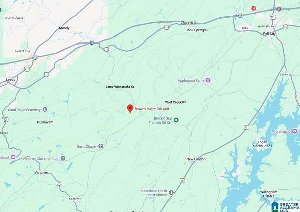 Est $635/mo6.8 +/- acres on Browns Valley Rd, just off Camp Winnataska Rd and Wolf Creek Rd. Located just outside Pell City. Hard to find small tract of acreage in a desirable area. Approx 35 minute drive to Birmingham. 15 minutes to Pell City. Good potential home site(s). No zoning restrictions. Please contact Austin Blair 205-478-7805 or Dana Ellison 205-369-1413 for more information.