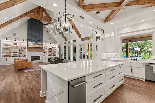 - Cable TV Available, Decorative Lighting, Double Vanity, Eat-In Kitchen, Granite Counters, High Speed Internet Available, Kitchen Island, Open Floorplan, Paneling, Pantry, Smart Home System, Sound System Wiring, Vaulted Ceiling(s), Walk-In Closet(s)