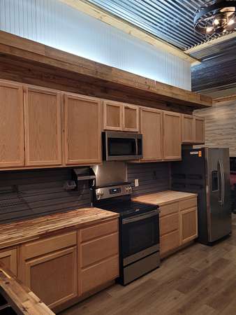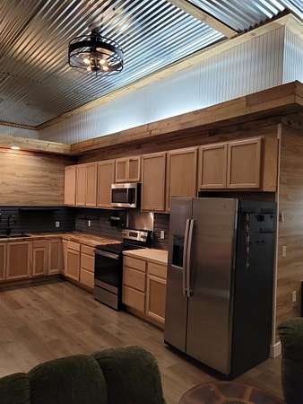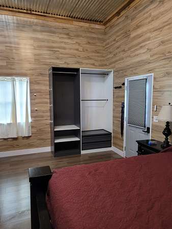 Discover the perfect blend of rustic charm and modern convenience in this beautifully remodeled barndominium, completely updated in 2023. 1 spacious bedroom, full bath, and a well-appointed kitchen. The garage is fully sheet rocked-ideal for conversion into a second living space. Mini-split heating and cooling system, ceiling fans, and custom closet systems for maximum storage. Enjoy a wrap-around porch with concrete flooring on two sides-perfect for relaxing or entertaining. Large gravel parking area plus RV parking with power hookup and dump station. Private water well with insulated rock covering and heater for year around reliability. This property includes two lots! Build your dream home on the second lot while renting out the barndominium to generate income. The additional lot already has its own power and septic system in place. Plenty of space for vehicles, RVs, and outdoor activities. Peaceful country setting with modern amenities. Close to all schools.