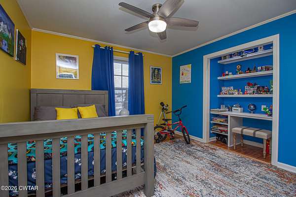 - Bookcases, Ceiling Fan(s), Kitchen Island, Pantry, Walk-In Closet(s)