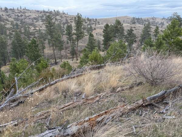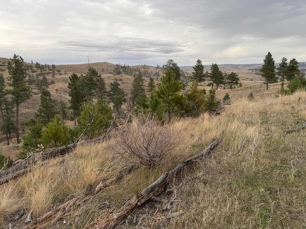 Nearly 500 acres of rolling grasslands are interspersed with substantial stands of ponderosa pine and cedar, creating a balanced landscape well-suited for grazing, wildlife habitat, and future development. Brumfield Road follows the upper ridgeline while Countryman Creek Road defines the southern boundary, providing good county road access to the property. From the crest of Brumfield Ridge, the terrain carries the visual weight and presence associated with classic Montana ranch country.