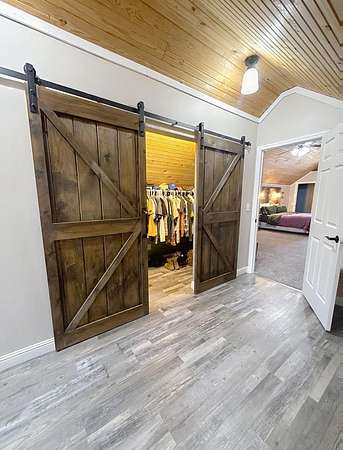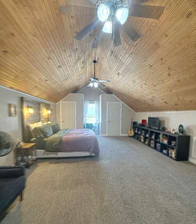 Experience country living at its finest located only 30 minutes from Chattanooga in Bryant, AL. This fantastic four-bedroom, two-bath home is ready for you to call home. The spacious living area, dining room, and kitchen are accompanied by three main-floor bedrooms, while the master retreat upstairs is truly remarkable, featuring a beautiful tile shower, expansive triple closets, a sitting area, and a cathedral ceiling with tongue-and-groove detailing. This home has walk-in closets in each room, ensuring a clutter-free lifestyle. The kitchen is equipped with stainless steel appliances, tile, lots of cabinet space, and a large pantry. A huge detached separate garage offers additional storage loft space, and the property's 1.78-acre plot provides picturesque views of a serene pond from the expansive front porch.
