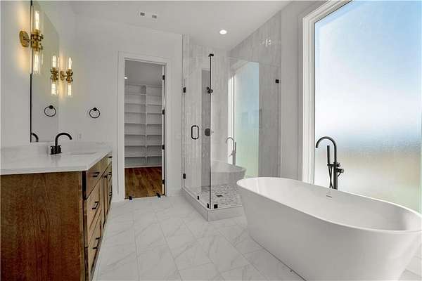 Discover this stunning new construction home on a sprawling 1.7-acre lot with breathtaking views and easy access to Tontitown's vibrant amenities. Thoughtfully designed, it blends modern luxury with timeless charm. Inside, an open kitchen and living area feature stylish LVP flooring, ideal for both casual gatherings and formal dining. The master suite offers a tranquil escape with dual vanities, a spacious walk-in closet, a walk-in shower, and a soaking tub. With three additional bedrooms, an upstairs bonus room with bath, and a 3-car garage, there's plenty of room to live and store. Enjoy the expansive yard and covered patio, perfect for embracing NWA's beauty. Don't miss the chance to make this home yours.