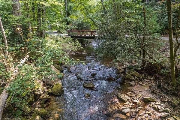 From Sylva, follow US-23/441 South towards Franklin. (17 miles), stay right onto NC HWY NC-28/Highlands Rd towards Highlands. Turn left onto Highlands Rd at bottom of ramp. Follow 6.8 miles to slight right on the Buck Creek Rd. Follow to sharp right into Teague Estates/Buck Falls. Cross bridge and follow until fork, stay left and follow around to Lots 7, 9 on your left. Chain is across drive.