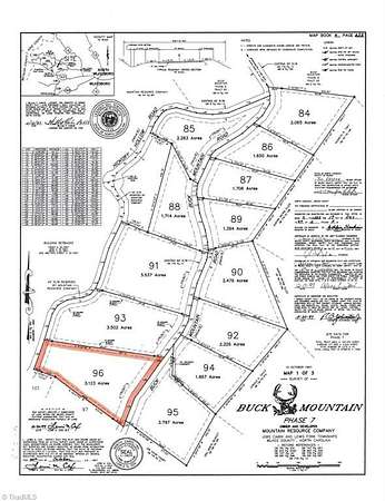 *BIG VIEWS* Conveniently located in the 3,400 acre Buck Mountain community...ONLY GATED ATV COMMUNITY in Wilkes County. Lot 96 is 3.1 acres w/existing driveway. Build your weekend getaway or vacation rental here & enjoy beautiful LAYERED MTN VIEWS. EASILY ACCESSIBLE on PAVED ROADS. FIBER OPTIC available. Long & short-term rentals allowed. Arrive at the gate from Winston in only 1 hr & from Charlotte in 1 hr 40 min. PRIME LOCATION! Centrally located 35 min from Boone, West Jefferson & Wilkesboro. Close to BLUE RIDGE PKWY, ASU, shopping, dining, golf, mtn biking & skiing. BUCK MTN HAS HARD TO FIND AMENITIES: ATV & Hiking Trails, Parks, Fishing Pond, Water Falls, Pavilions, Community Center, Helipad, Outdoor Activity Center, etc. Make lasting memories while hiking or riding ATVs on the miles of trails. YOU WON'T BELIEVE ALL THIS COMMUNITY HAS TO OFFER! 1,400 SF min bldg requirement. NO TINY HOMES. NO MOBILE HOMES. NO SELLER FINANCING.