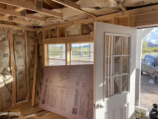 Discover 1.621 acres of opportunity in the growing Buckeye area, featuring two casita-style, off-grid dwellings. Power is available at the corner of the property, and R-43 zoning provides versatile potential. The property includes an elevated pad with an ABC road-grade base, a 16' x 30' 6'' concrete slab (3,000 psi), and 180' of heavy-duty redwood fencing. The lot features washes on the East and West sides, with a flat center and a slight grade along the borders. Enjoy stunning sunsets and 360-degree mountain views from this peaceful, low-density location, offering privacy, open space, and unobstructed vistas. Buyer to verify schools, zoning, use, utilities, access, and all pertinent information.
