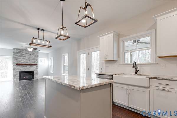 PLAN CHANGE TO KIRKLAND. The Kirkland plan, offering 2,081 square feet of thoughtfully planned living space. The plan offers 3 to 4 bedrooms and 2.5 bathrooms, 2-car garage. You will enter through an intimate front porch, once inside, the spacious foyer will lead to a private office space. Continuing down the hallway, you'll enter the family room with the included 4 foot extension. This an expansive and versatile space is perfect for gatherings or quiet evenings. The family room flows seamlessly into the dinette and kitchen area, creating a central hub. The kitchen includes a walk-in pantry and a breakfast bar that doubles as a dining and buffet space. Near the dinette, a 2 car front-load garage. There is also a centrally located powder room on the first floor. Up the stairs, a loft area that connects to the sleeping quarters, two secondary bedrooms and a full bathroom conveniently located between them. And a laundry room. The spacious primary suite and ensuite include a private water closet, an extended vanity, a walk-in shower, a linen closet and a walk-in closet thoughtfully designed to accommodate your storage needs. The home is being built in Compass Cove, where luxury living meets water access to the beauties of Lake Anna. Whether this is your forever home or an investment opportunity, Compass Cove is an exciting new neighborhood for both. Photos for advertising purposes and are not of the actual home and may include upgrades not included in listed price.
