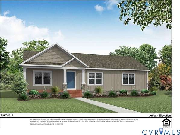 THIS IS A TO BE BUILT HOME! Ask about structural options and homesites. The Harper III is a home that blends a rustic twist with a modern platform, offering 1,624 sqft of versatile living space. The Harper III, greets you with an attractive front porch, perfect for sipping your morning coffee, welcoming guests, or watching the kids play. Stepping inside, you'll find a spacious living room ready to adapt to your family's lifestyle. From the living room, the home transitions seamlessly into the kitchen and dining area, where functionality meets style. The kitchen boasts fashionable finishes and a pantry for added storage. Adjacent to the kitchen is the dining area, with access to the covered deck for a seamless indoor-outdoor living experience. Continuing through the central hallway, located between the living and dining areas, you'll find a walk-in laundry room with access to the 2 car garage and a full bathroom. Down the hall, you'll find two secondary bedrooms, each featuring its own walk-in closet. Across the home lies the primary suite, a spacious retreat designed to offer peace and relaxation. This serene space includes a primary bathroom featuring a chic walk-in shower, and a walk-in closet, providing ample space. This Harper III plan can be customized to lifestyle and personal aesthetics. This home is located in Compass Cove located on the private side of Lake Anna and offers a boat dock, picnic area with gazebo. A boat slip is available for purchase as well. Photos used for advertising purposes and not of the actual house and may include upgrades not part of the advertised price.