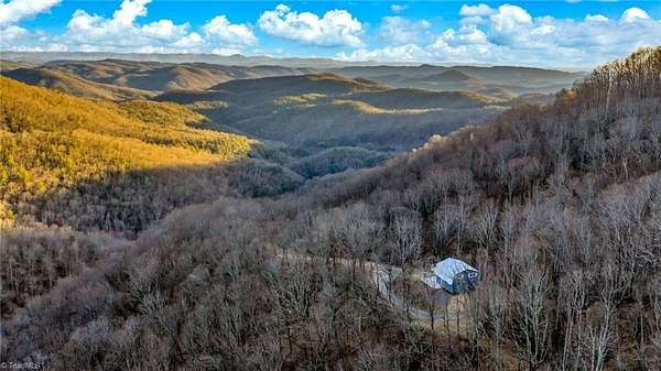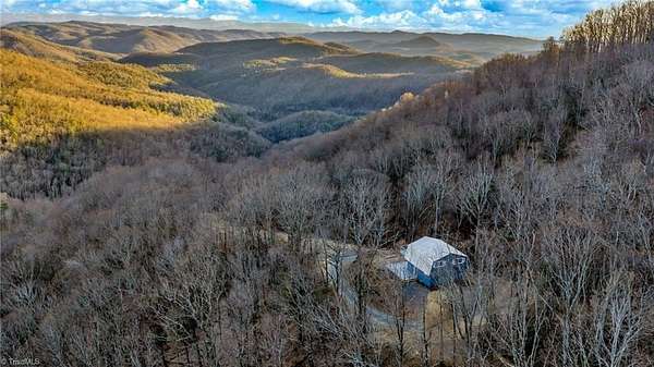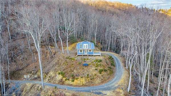 Discover an OFF GRID HOME on nearly 21 acres with breathtaking long-range layered views, just under 2 miles from the Blue Ridge Parkway. Nestled in Wilkes County, this former hunting cabin offers easy access to the Mountain to Sea Hiking Trail. Recently updated, it features fresh paint, new decks, luxury vinyl flooring, an updated kitchen and bathroom, a propane range, and a tankless water heater. Powered by solar and propane, it includes pre-wiring for a generator. The main level has a kitchen, living room, 1 bedroom, and 1 bathroom, while the upper level boasts 2 additional bedrooms and extra living space. Enjoy outdoor serenity with ATV trails, abundant wildlife, and a creek. Likely ineligible for residential mortgages; suitable for land loans. Just 20 minutes from vibrant downtown West Jefferson and other nearby towns. Additional acreage available. Perfect for outdoor enthusiasts seeking solitude!