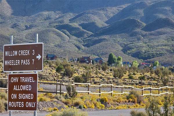 From US-95 N, continue North past Lee Canyon and exit West at Cold Creek turnoff. Travel west on road for about 12 miles, turn north by parking area and ponds, follow road to fork for Wheeler Pass. The property will be on your left-hand side as you travel north on Bugling Bull Road. The backside of the property is also accessible from Wheeler Pass.