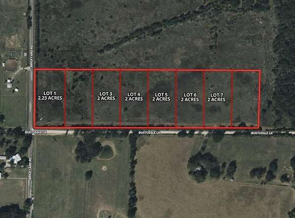 From I-35, exit FM 1858 in West. Head west on FM 1858. Left on Brickyard Road. Left on Bugtussle Lane. Lots on the left. Signs on property.