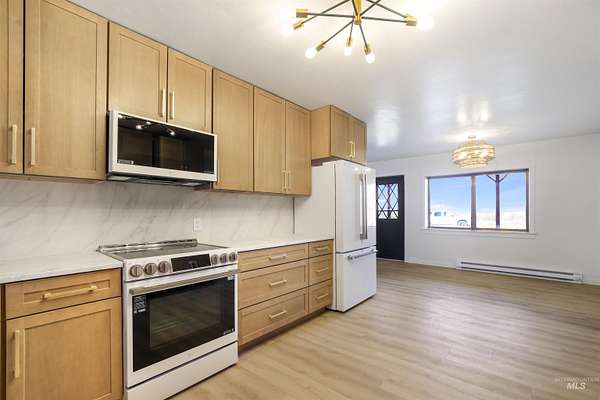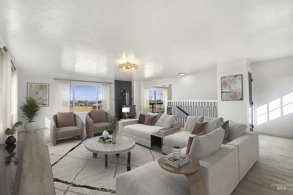 Welcome to your private country retreat! This stunning property features a fully renovated interior with all-new appliances, blending modern comfort with timeless charm. Set on 5 beautiful acres with fully fenced pastures ready for your animals, mature fruit trees, and 5 valuable water shares, the land is as functional as it is picturesque. A massive shop offers endless possibilities for hobbies, storage, or work, while the charming "chicken castle" is ready for your feathered friends. Enjoy peaceful mornings and golden evenings from the front and back balconies-perfectly positioned so you never miss a sunrise or sunset. Serene, spacious, and thoughtfully updated, this property is country living at its finest