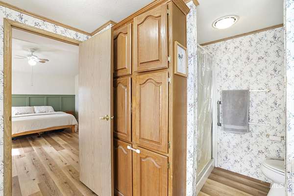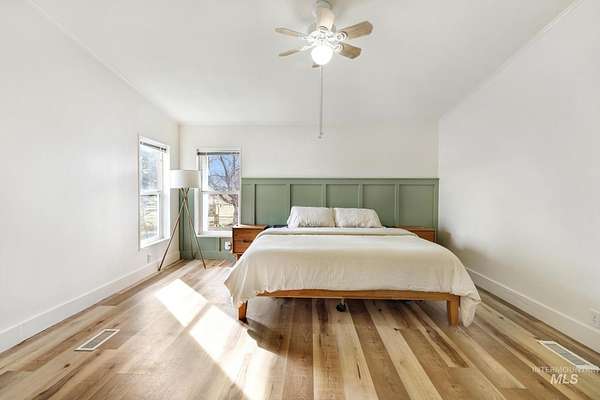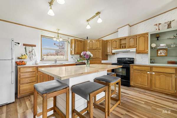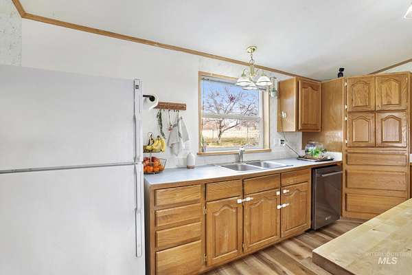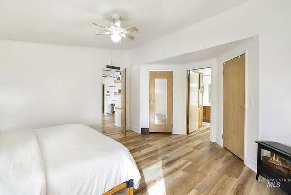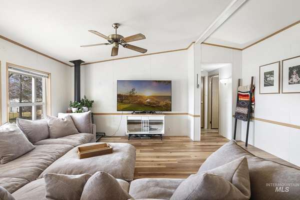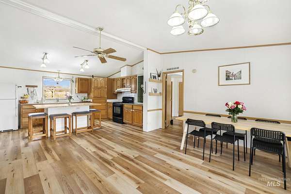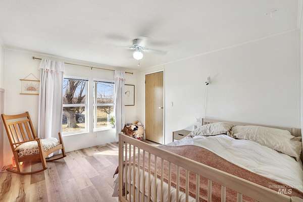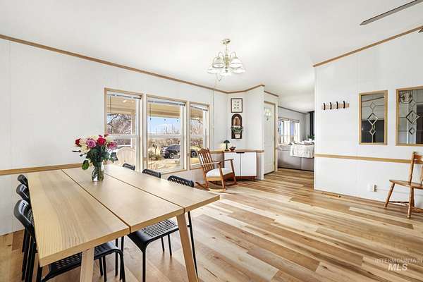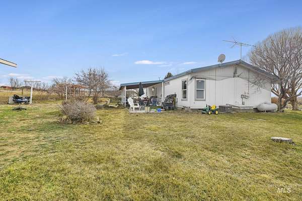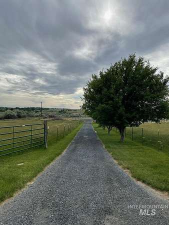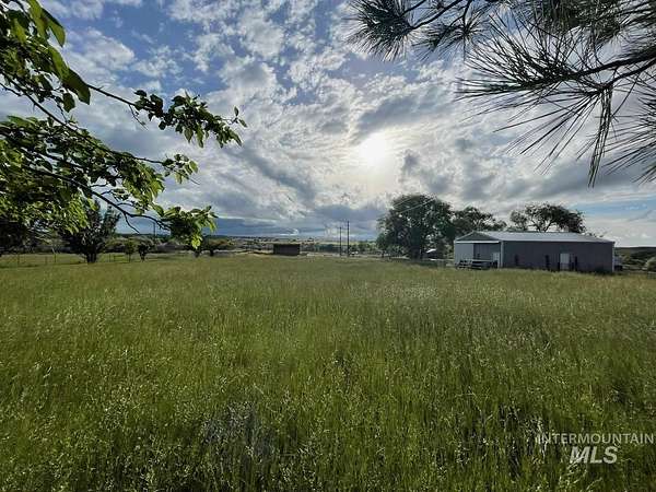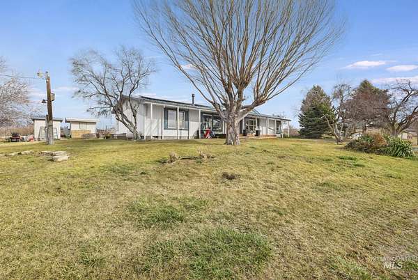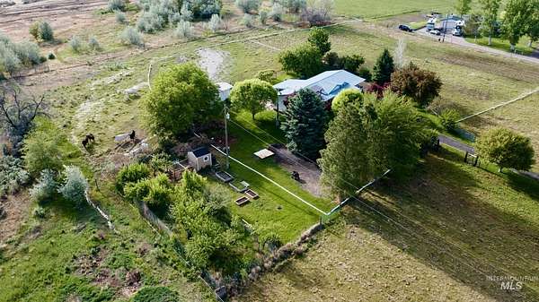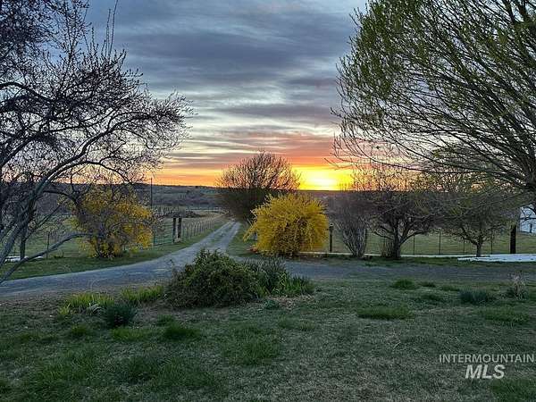 FIVE-ACRE property offering space, privacy, and endless possibilities. Includes 4 acres of irrigated pasture with water shares and pipe, plus a large 24 X 32 barn with 220 power. A tree-lined drive leads to a beautiful home with a spacious front porch. The yard features sprinklers, a chicken coop, outdoor shed, and a shed recently converted into a home office. Enjoy a mature orchard, Idaho native trees, grapevines, peonies, and stunning sunsets. The renovated home welcomes you with generous living spaces filled with comfort and warmth, highlighted by a cozy gas fireplace. The spacious kitchen and dining area are perfect for gathering, featuring new LVP flooring, refinished walls, an updated island, and a new dishwasher. Thoughtful storage is found throughout, including a pantry that you will love and dual closets in the primary suite. Unwind in the beautifully updated primary bath with a soaking tub, modern tile, and natural light. Peaceful, functional, and truly move-in ready-this is a home meant to be enjoyed.