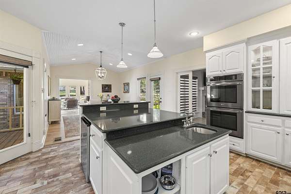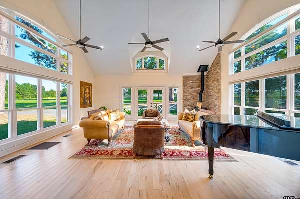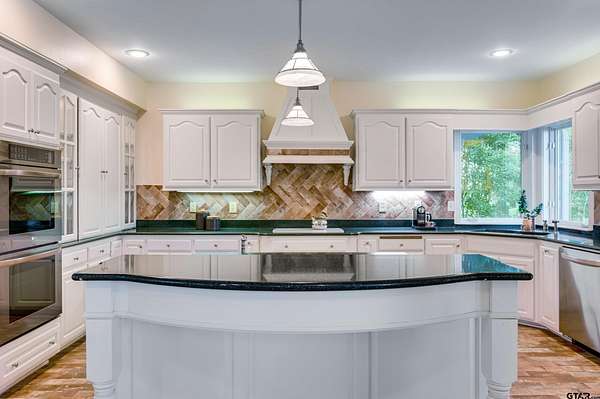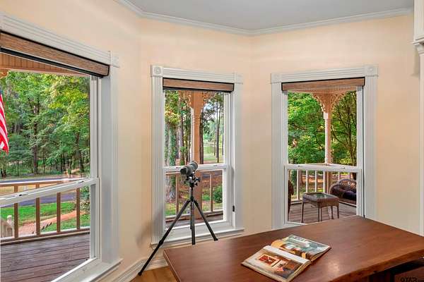 Driving through the entrance, tranquility envelops you as the calm beauty of this remarkable 20-acre wooded retreat unfolds. A private, winding drive meanders through the trees to the completely updated home perched gracefully on a hill, offering privacy, serenity, and timeless appeal. Inside, the lovingly rebuilt residence blends comfort and refined style with light hardwood floors, an inviting brick fireplace, and walls of windows that bring the outdoors in. A private office with custom built-ins and abundant natural light provides an inspiring workspace. The kitchen is a true culinary haven, featuring abundant cabinetry, a built-in Sub-Zero refrigerator, top-tier appliances, and a corner sink overlooking the pool. The Great Room showcases a vaulted ceiling, wood-burning stove, and expansive windows that frame the surrounding natural beauty. The serene main-level primary suite offers exceptional privacy, with peaceful views and a spa-like bath complete with marble counters, double sinks, a soaking tub, and an oversized shower. A spacious utility/mud room includes wall-to-wall storage and space ideal for a home gym. Upstairs, two guest suites each offer luxury baths for comfort and privacy. Outdoor living is equally impressive. A beautifully landscaped pool invites relaxation in a private, resort-like setting, while both front and back porches provide ideal spaces to enjoy the manicured grounds and wooded surroundings of this wildlife habitat. Additional highlights include a two-car garage, an approximately 1,100 sq. ft. shop/barn with loft and HVAC, with a charming guest house & patio. A greenhouse, full-property generator, wildlife exemption, and high-capacity well further enhance the property's functionality and sustainability. This extraordinary estate offers a rare blend of elegance, privacy, and self-sufficient living--a lifestyle as alluring as it is unique.
