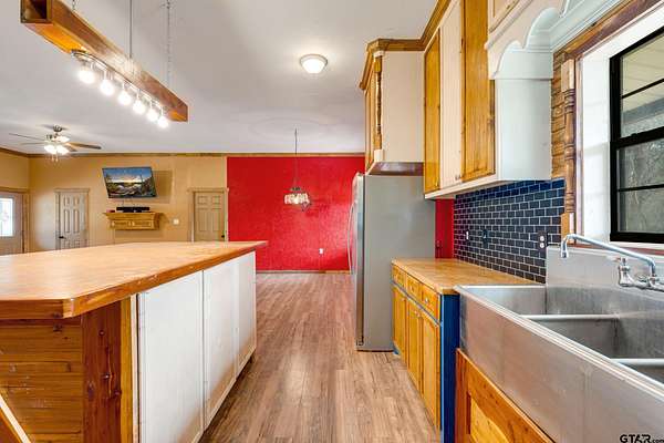 Prime opportunity on 10+/- beautiful acres in sought-after Bullard Independent School District! This level corner tract offers outstanding potential with approximately 1,243 feet of road frontage--ideal for future development, investment, or creating your own private retreat. The property features an approximately 2,100 sq. ft. home offering 2 bedrooms and 2.5 baths, designed with low-maintenance construction inside and out. A spacious open-concept living, dining, and kitchen area creates a welcoming central gathering space, complete with stove, microwave, refrigerator, and commercial stainless sink. Thoughtful layout and durable finishes make this home practical and comfortable for everyday living. Enjoy peaceful East Texas views from both the front and back porches. The land is mostly level with a scattering of mature trees and includes a picturesque spring-fed pond--perfect for relaxing afternoons or enhancing the property's natural appeal. Whether you're looking for development potential, room to expand, or a serene homestead with excellent road exposure, this versatile corner tract offers endless possibilities in a prime location.