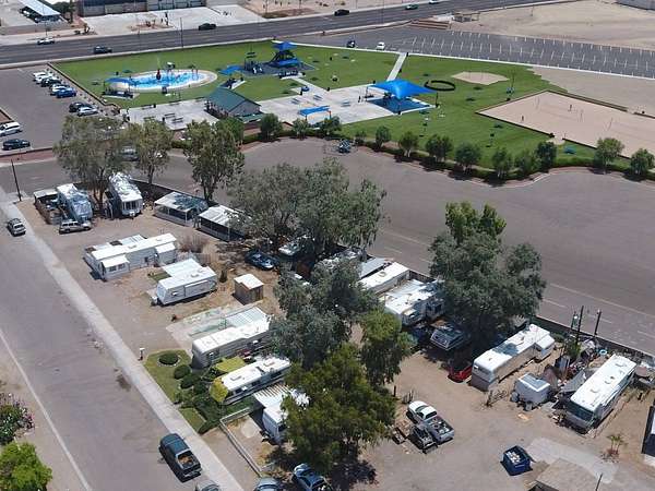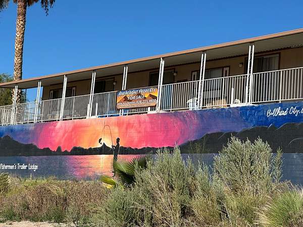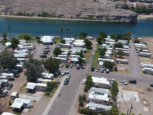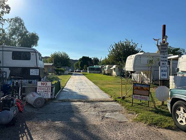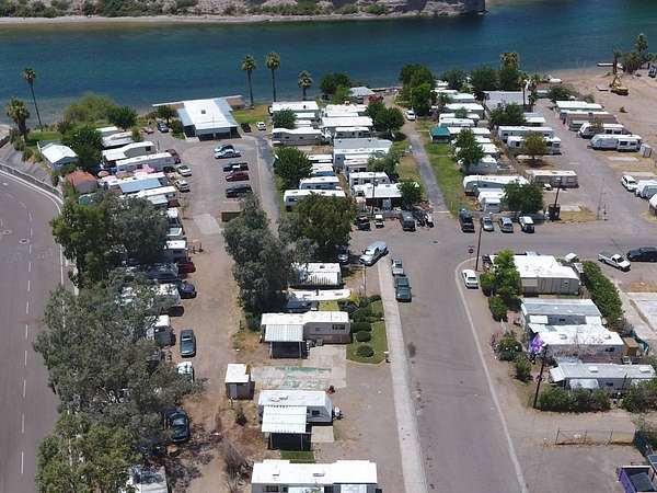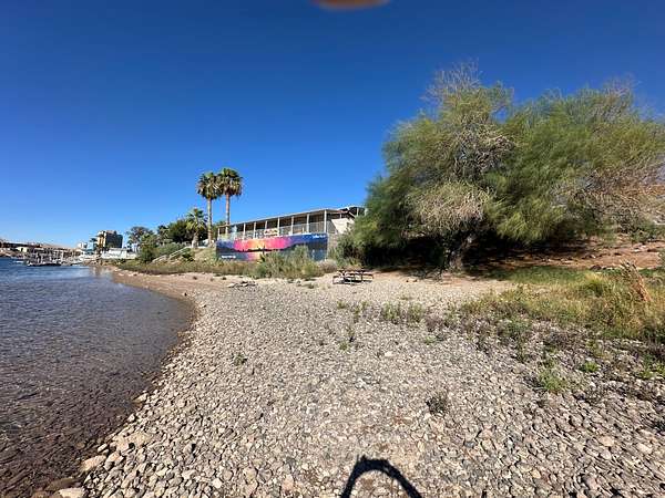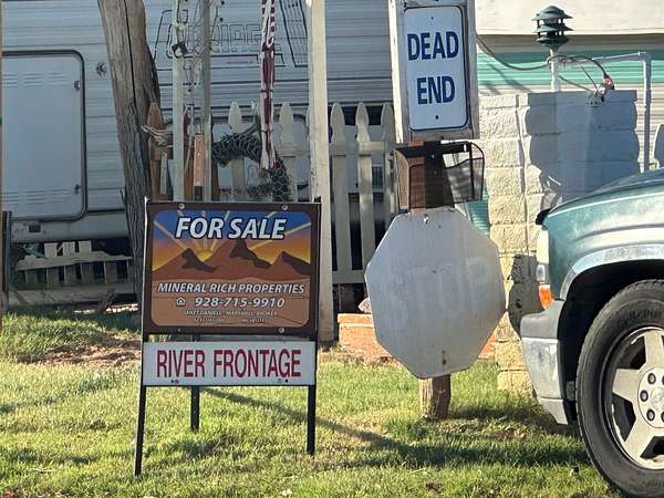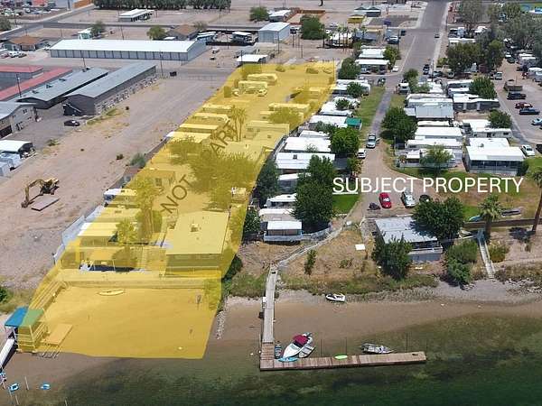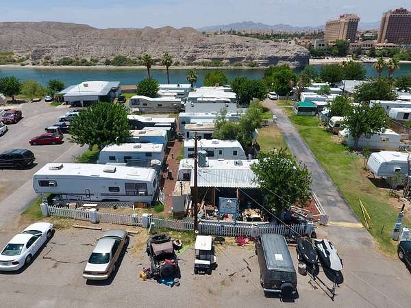 Where can you find property like This 2.87 +/- acre property along the Colorado River in Bullhead City, Arizona, offers a unique chance to own over 400 feet of riverfront right across from Harrah's Casino in Laughlin, Nevada. Nestled next to the Bullhead City Community Park, with its launch area, splash park, and calm water depths in a no-wake zone, this location is perfect for a peaceful beach getaway. Imagine transforming this space into a tiny home community, a family estate compound, a modern RV park, or a mobile home park. Large riverfront properties like this are rare, especially with the growing demand from new residents drawn to Arizona's mild winters and summer water activities. Currently functioning as an RV/mobile park with one vacant lot, this property holds incredible potential. Don't let this remarkable opportunity slip away! the possibility of developing a parcel for your own use and selling off the reminder is there.,