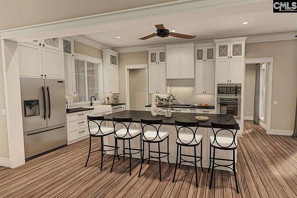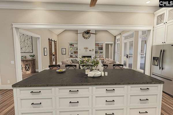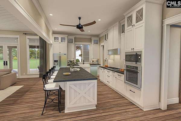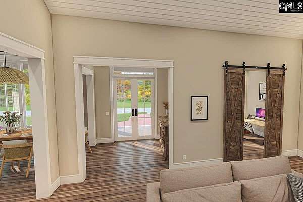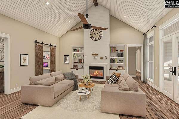 The Rocky Creek Floor Plan- 18.5 acres, with deer stands and new construction. This 4/5-bed modern farmhouse plan has a balanced exterior with two gables flanking the deep front porch. A gable is centered above the porch and lets light into the foyer and two decorative dormers provide more balance and symmetry to the home. Inside, an open floor plan has the great room with 18' vaulted ceiling open to the kitchen with large island and French doors on the back wall that open to the massive rear porch which serves as an outdoor living room. There, an outdoor fireplace with plenty of room for furniture.A split bedroom layout maximizes your privacy by placing the master bedroom on the right side of the home. The bathroom has a vaulted ceiling and accesses the enormous walk-in closet as well as the laundry room. Across the home, three bedrooms share two baths, one of them a Jack and Jill. Don't miss the home office. It is concealed by sliding barn doors and located just off the foyer. With views to across the front porch, it makes a great work-from-home retreat.Above the 3-car garage. Disclaimer: CMLS has not reviewed and, therefore, does not endorse vendors who may appear in listings.