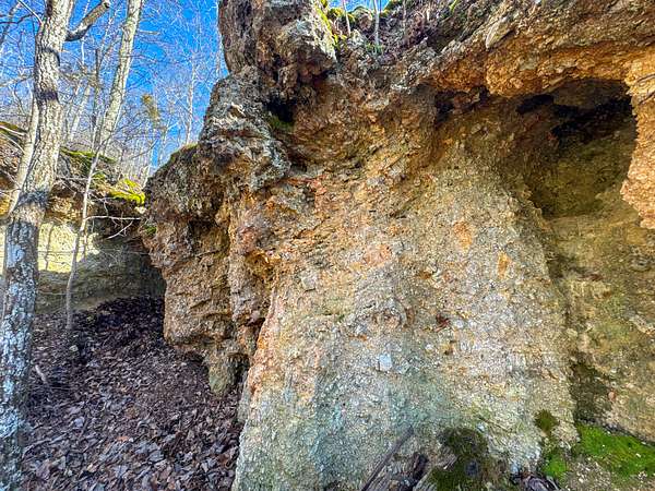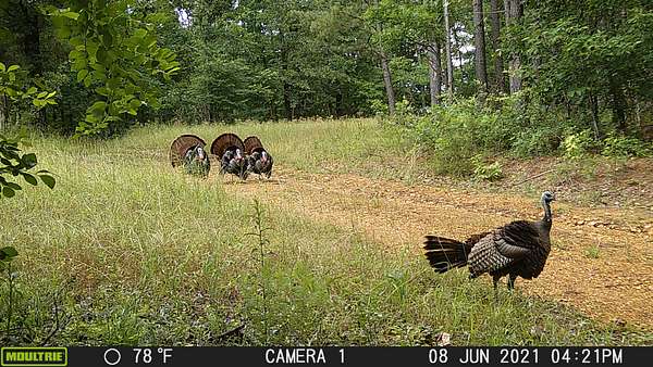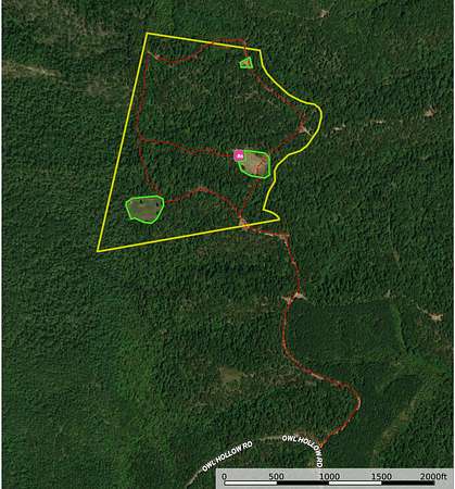 The property supports whitetail deer and wild turkey. A year round stream provides a consistent water source and enhances habitat diversity. A cave with steady dripping water adds a unique natural feature.