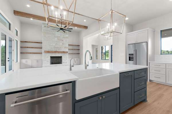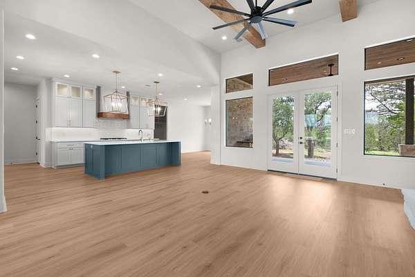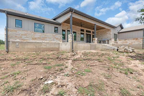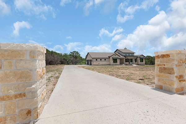 Inviting single-story home by Jon Morgan Homes on a beautiful 5-acre tract in the gated community of Burnet Oaks. This thoughtfully designed 3-bedroom + study, 3.5-bath home centers around a sun-filled living, kitchen, and dining area with soaring ceilings and seamless access to a covered patio featuring a built-in outdoor grill. The well-appointed kitchen includes a KitchenAid appliance package, striking Quartzite countertops, custom cabinetry, and under/over-cabinet LED lighting. The private primary suite offers a spa-like bath with oversized walk-in shower and a spacious walk-in closet with built-ins. A dedicated study with closet can serve as an optional 4th bedroom. Each guest bedroom includes its own en-suite bath and walk-in closet. Additional highlights: oversized 3-car garage, iron entry door, 16' entry ceilings, and Wi-Fi programmable thermostat. A rare blend of luxury, function, and acreage living.