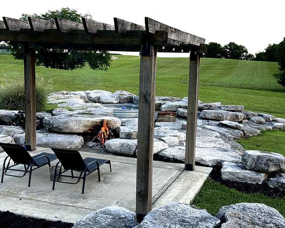 Step outside to your own personal retreat. A charming patio offers the ideal spot to enjoy morning coffee or unwind in the evening under starlit skies. The stock tank pool provides a refreshing dip on warm days, and the surrounding landscape is meticulously maintained with unique rock formations that enhance the property's natural beauty. Have you ever dreamed of having your own retreat to share with others? Imagine picnic tables, group meetings, and meditation among the circles of trees through the front pasture.