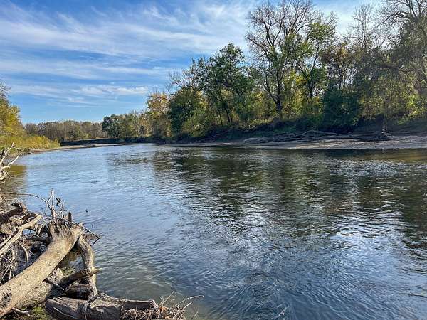 The western 35.68 acres lie within city limits, with municipal water and electricity available along the south side of Buxton Drive, while the eastern 40 acres provide a more private setting accessed via an established driveway easement. Whether you are looking to build a home, create a weekend retreat, or enjoy outdoor recreation, this property combines productive farmland, river frontage, and timbered hunting grounds in one property.