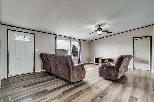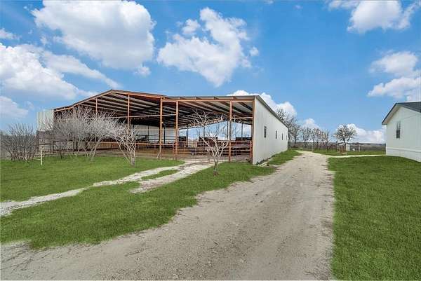 Discover wide-open Texas living on 16.5 beautiful acres in Bynum, Texas. This well-maintained 3-bedroom, 2-bath double-wide mobile home features a new roof replaced in 2025 and new LVP and carpet flooring throughout the home. Perfect for horse lovers or raising cattle, the land includes an impressive 90x100 covered barn with an indoor sandy loam arena and four stables, plus plenty of space for equipment, trailers, or workshop projects. Enjoy room to ride and expand while embracing the country lifestyle you've been dreaming of. Find your perfect ranch here today!
