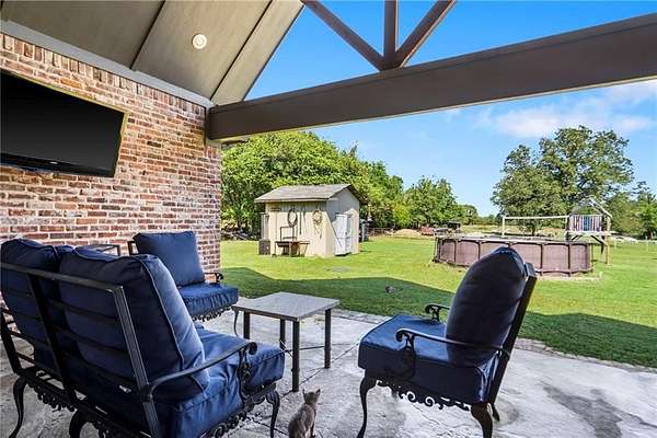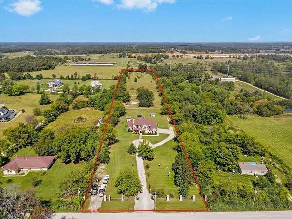 Step into the pinnacle of luxurious country living with this exquisite 4-bed, 3.5-bath European-inspired home, nestled on 4.98 acres of land. Boasting soaring cathedral ceilings & hardwood floors throughout. The eat-in kitchen, featuring granite countertops & a large pantry, is a dream. A formal dining room, which could also double as a home office, offers versatile living space to suit your needs. The master suite is a true retreat, complete with a spa-like en-suite bathroom featuring a jacuzzi tub, dual vanities, & a generous walk-in closet. A bonus room adds even more flexible living space. Step outside to the backyard, where a charming patio overlooks the landscape, complemented by a fire pit & 2 convenient storage sheds. This property is a country lover's paradise with farm animals the sellers are willing to negotiate selling separately with acceptable offer, making it ideal for those seeking a true rural lifestyle. The property includes a water well. Don't miss your chance to own this breathtaking estate!