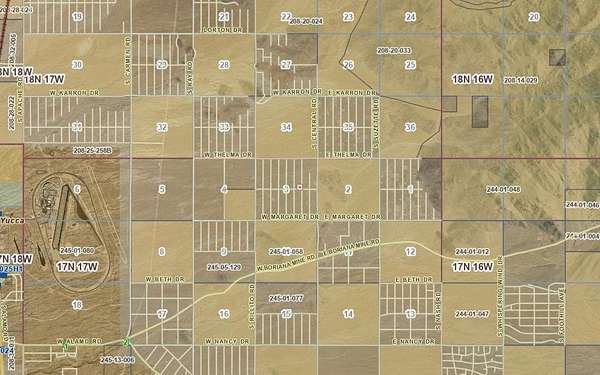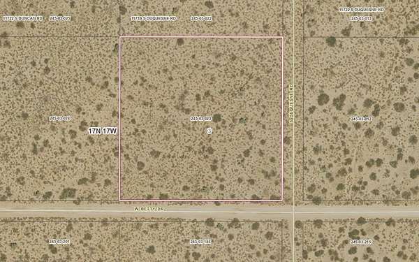 I-40 Exit 25 Alamo Rd to Boriana Mine Rd (MM2) to Rillito, L Susie after 3/8 mi, one street west to Robles R 1/2 mi to Margaret (Mary Beth old maps) R to Rillito L 1/2 mi to Betty (Cynthia on old maps) R 3/4 mi to Duquesne, parcel left (W) side. GPS mapping apps etc. are very unreliable here, Google shows Duquesne as Ruby, but the location is correct. Use caution on dirt roads