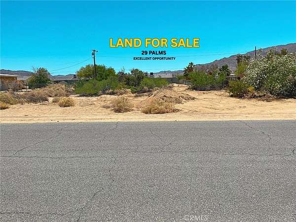 Seller may offer financing with $5,000 down and payments around $500/mo on a $35k price. Build your dream home, desert getaway, or income-generating vacation rental on this large, flat, buildable 0.34-acre lot in Twentynine Palms. Zoned Single Family Residential and located in an established neighborhood with successful vacation rental neighbors, this property offers nearby utilities and easy access to local amenities. Just 4 minutes (1.2 miles) from the famous Joshua Tree National Park Visitor Center, and 6 minutes to the park entrance, you'll have quick access to world-class hiking, rock climbing, and stunning desert landscapes. For everyday needs, the property is conveniently located close to amenities. Grocery stores like Stater Bros. are 7 minutes away, downtown Twentynine Palms, with its shops, dining, and arts scene, is just an 8-minute drive, and schools like Twentynine Palms Junior High and Oasis Elementary School are within 3 to 5 minutes. Whether you're dreaming of a personal getaway or a high-demand rental, this parcel is full of potential in one of Southern California's most iconic desert communities. APN: 0617-201-15-0000. Address is not a real address and is for marketing purposes only. GPS: 34.135101733501415, -116.03893051253617