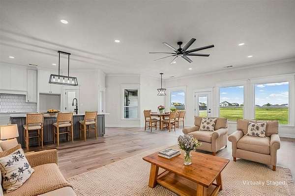 This modern country home blends timeless craftsmanship with a very thoughtful layout. The open-concept is intentionally designed with an oversized living and dining space—perfect for a growing family or for kids and grandkids to come back home, gather together, and truly stretch out when they visit. Every detail has been upgraded, from the oversized black windows and high-end flooring to the designer fixtures, tiled front porch, and custom trim work with interior window framing that adds a classic craftsman touch. The home offers 3 bedrooms plus a flex room that could easily serve as a home office or 4th bedroom. The spacious main living area flows seamlessly to a covered back patio, accessible from the living room, primary suite, and guest room—ideal for entertaining or enjoying peaceful country evenings. The kitchen features ceiling-height cabinetry that completes the upscale feel. Major system updates include a brand-new HVAC with a 10-year warranty and a new 50-gallon water heater. Set on 2 unrestricted acres with no HOA, this property offers privacy, freedom, and room to grow. Conveniently located minutes from I-30 and the new Kathy Kirkpatrick Elementary, this home delivers the perfect blend of style, space, and accessibility. Come experience life in the highly sought-after Caddo Mills school district and become part of our tight-knit community!