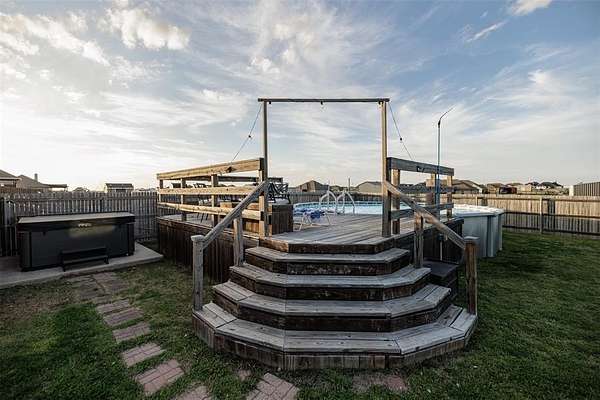 - Covered Patio/Porch, Fence, Rain Gutters
