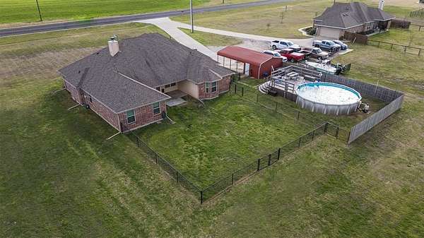 Welcome to 4704 FM 6 in sought after Caddo Mills ISD. Spacious 4-bedroom, 3 full bath home on 1.57 acres featuring a split floor plan designed for comfort and privacy. The primary suite is tucked away for added seclusion and offers generous space, a large walk-in closet, jetted tub, separate shower, and dual vanities. One oversized secondary bedroom with a full bath just outside the door of the bedroom offers a layout that could function similarly to a second primary suite—ideal for guests or multi-generational living. The kitchen is designed with functionality in mind, featuring an island with additional storage, pull-out trash cabinet, electric cooktop that is already plumbed for gas, and plenty of workspace. The living area includes a fireplace with gas starter for added warmth. Outside, enjoy a fully fenced yard with cyclone fencing for pets, plus a separate privacy-fenced area surrounding the above-ground pool, 7x7 hot tub, and deck—perfect for relaxing or entertaining. Additional exterior features include an oversized garage, a 20x18 detached carport, and an attached 10x18 locking storage shed. The home is built with 6-inch spray foam insulation for energy efficiency, a tankless gas water heater and includes an owned buried propane tank. Permanent LED Christmas lighting with remote control adds year-round convenience for holiday decorating. Located outside city limits with no HOA, offering more freedom while still providing plenty of space to enjoy country-style living. All information deemed reliable but not guaranteed. Buyer and buyer’s agent to verify all information. Property lines shown in photos are approximate and for illustrative purposes only.