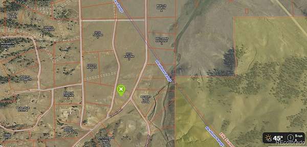 From Hartsel, head south on Hwy 9 for 7.4 miles, turn right on Comanche Trail, turn left on Cahokia Road, watch for Downy Rd, this lot will be the 4th one from this intersection, on your right, look for sign. Please refer to the attached maps to understand which lots are where. It will make sense when you are standing there. GPS coordinates: 38.92242, -105.72694