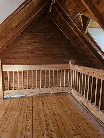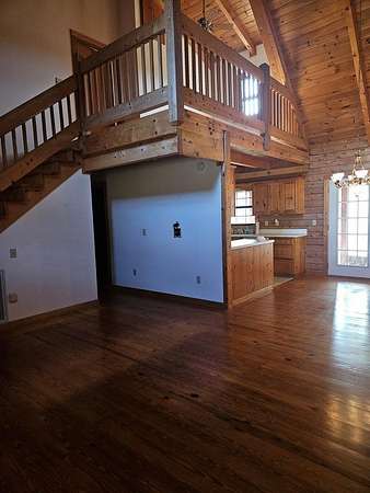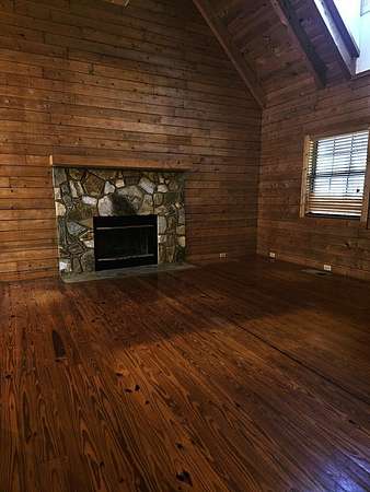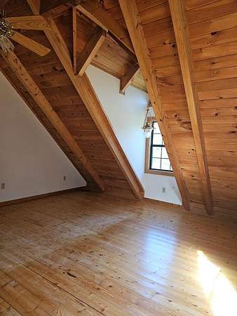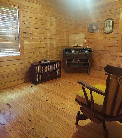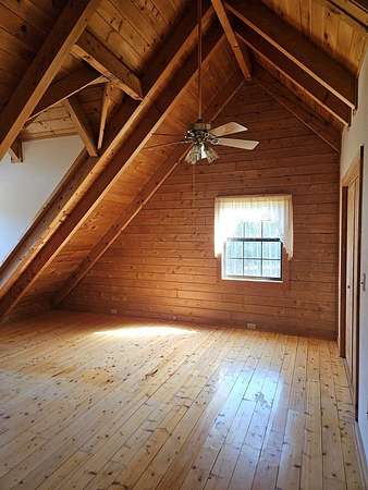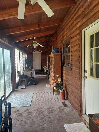 This home sits on 2.6acres and is a 3bedroom 2 bath home. The master bedroom (with a sky light) and bath are on the second floor, the other 2 bedrooms are on the ground floor with a hall bath. The living room has a fireplace and a skylight. All the floors are pine and the walls are pine. The ceiling is pine with exposed beams, very pretty. The bathrooms and kitchen and laundry are tile floors. The kitchen appliances will remain as well as the custom blinds. This is a very nice home with a nice front porch and on the back is a glassed-in porch with a separate a/c unit from the house to cool it off. It will require a new roof and other repairs. The home is being sold as is.
