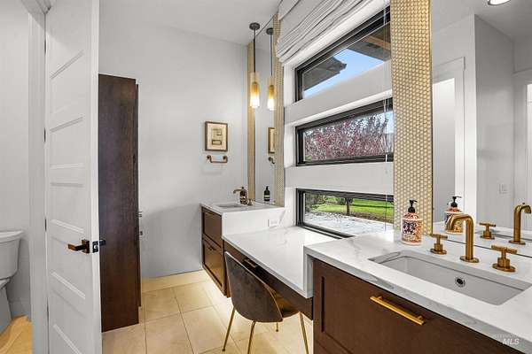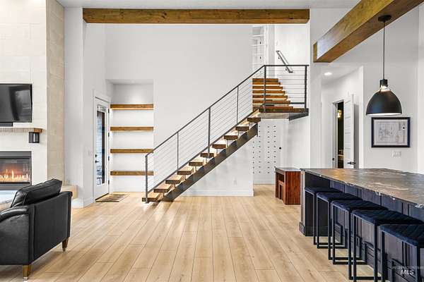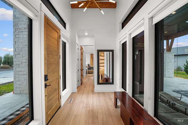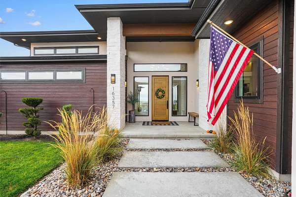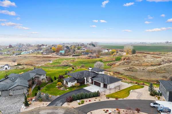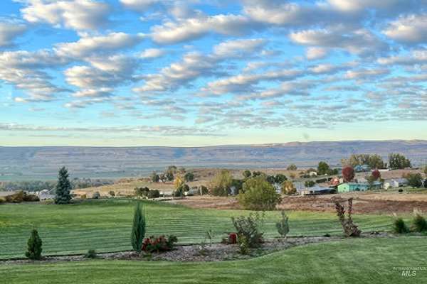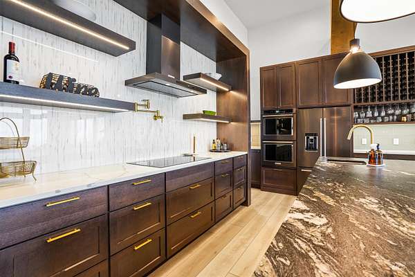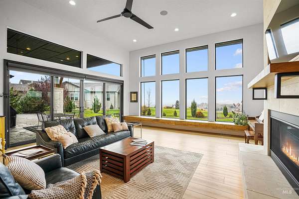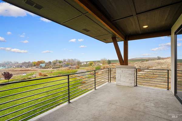 Enjoy a breathtaking view from this beautifully upgraded home. The gourmet kitchen showcases a leathered-granite island, quartz countertops, pot filler, appliance garage, Italian porcelain slab backsplash, custom plate organizers, a 72-bottle wine rack, wine fridge, and ice machine. Additional highlights include a programmable Wi-Fi sprinkler system, premium Flooret flooring with a 100-year warranty, raised-height counters, Pella windows, and an oversized 1,314 sq ft garage with rear access. The living area features a stunning limestone fireplace with a walnut mantel and a whole-home sound system. The primary bath offers marble flooring and heated floors. Take in the view on your 217 sq ft upper balcony. The home is also wired for a hot tub or swim spa and includes under-cabinet and stair lighting, a UV water-sterilization system, and a 1,000-gallon propane tank. Gorgeous 1016 sq.ft. covered patio with 16 x 10 foot slider to enjoy year round.