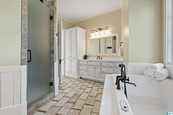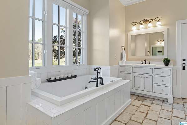 - French Doors, Jetted Tub, Linen Closet, Multiple Staircases, Recess Lighting, Safe Room/Storm Cellar, Separate Shower, Separate Vanities, Tub/Shower Combo