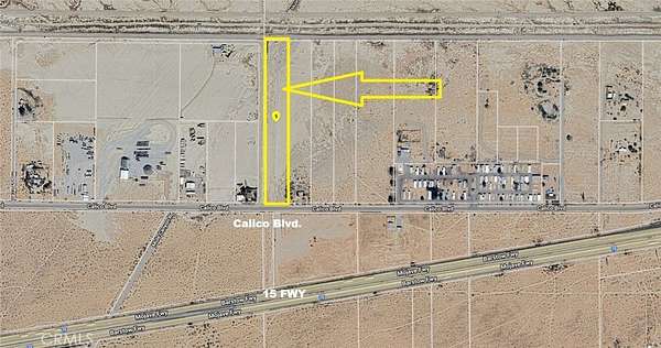 Exceptional opportunity to own 5.43 acres of flat, buildable land with direct frontage on paved Calico Blvd in Yermo. Strategically located just off the Calico Rd exit from Interstate 15, this parcel benefits from high visibility and traffic exposure from millions of travelers heading to and from Las Vegas each week. Ideal for future development or investment, this lot offers convenient access and flexible RL (Rural Living) zoning.