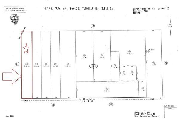 Est $438/moExceptional opportunity to own 5.43 acres of flat, buildable land with direct frontage on paved Calico Blvd in Yermo. Strategically located just off the Calico Rd exit from Interstate 15, this parcel benefits from high visibility and traffic exposure from millions of travelers heading to and from Las Vegas each week. Ideal for future development or investment, this lot offers convenient access and flexible RL (Rural Living) zoning.