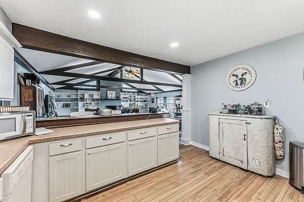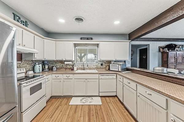 Welcome to Cow Creek Farms, situated on 2.097 acres this property offers 2,600 sq ft of living space with 4 bedrooms and 2 full bathrooms. The home features an open-concept living, dining, and kitchen area. The property is currently configured with half of the home used as a short-term rental, providing flexibility for owner occupancy, multigenerational living, or income-producing use. An additional approximately 1,000 sq ft area offers potential for a mother-in-law suite, guest quarters, or separate living space. The property is suitable for agricultural use, with improvements including a 1,500 sq ft barn with chicken coop and pens, supporting livestock, poultry, 4-H, FFA, or hobby farming. The acreage provides space for animals, equipment, or related agricultural activities. Combining classic farmhouse charm with modern livability, this property is a rare opportunity to enjoy country living with room to grow?just minutes from the heart of Calvert.