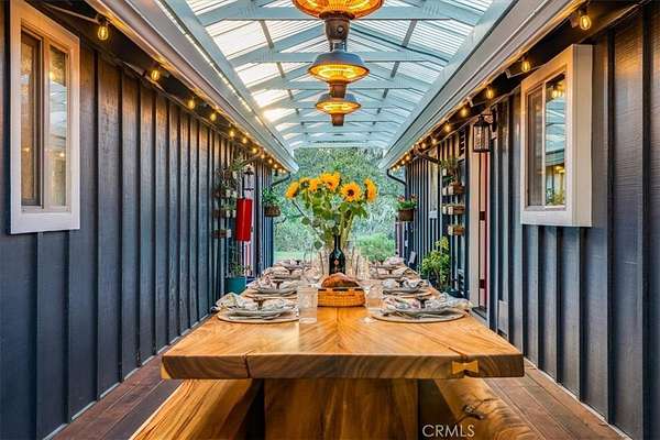 The property features two separate homes filled with abundant natural light, a two-car garage, and a light-filled covered breezeway connecting the homes, complete with outdoor heating for year-round enjoyment. Inside both residences are custom-built European kitchen cabinets, high-end European appliances, and quartz countertops. Flooring includes 8½-inch plank hardwood throughout the main living areas, tile in the bathrooms, and a heated floor in the primary bathroom for added comfort.