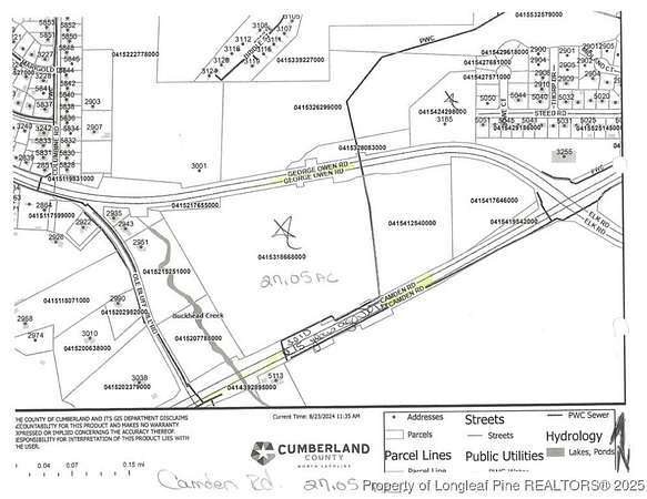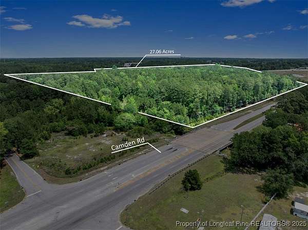 $2,500,000.00 27 Prime Acres located in a high traffic area between two multi-lane roads. Bounded on the front by Camden Rd. (1003' of road frontage) and on the back by George Owen Rd. (1392' of road frontage). Located just outside of the Hope Mills town limits. Easy access to Hwy. 301 Business, I-95 and Hwy. 401. Multi-family and Commercial (with approval) uses may be possibilities for this acreage. Lot line overlays are an estimate of boundaries. A registered land surveyor must be used to locate all corners on the ground to determine accurate boundary lines. Buyers must confirm available utilities, and any usage restrictions, for this specific property. Utilities are on properties within the immediate area. Sellers have additional tracts of land available for purchase. Property is located near the intersection of Camden Rd. and George Owen Rd.