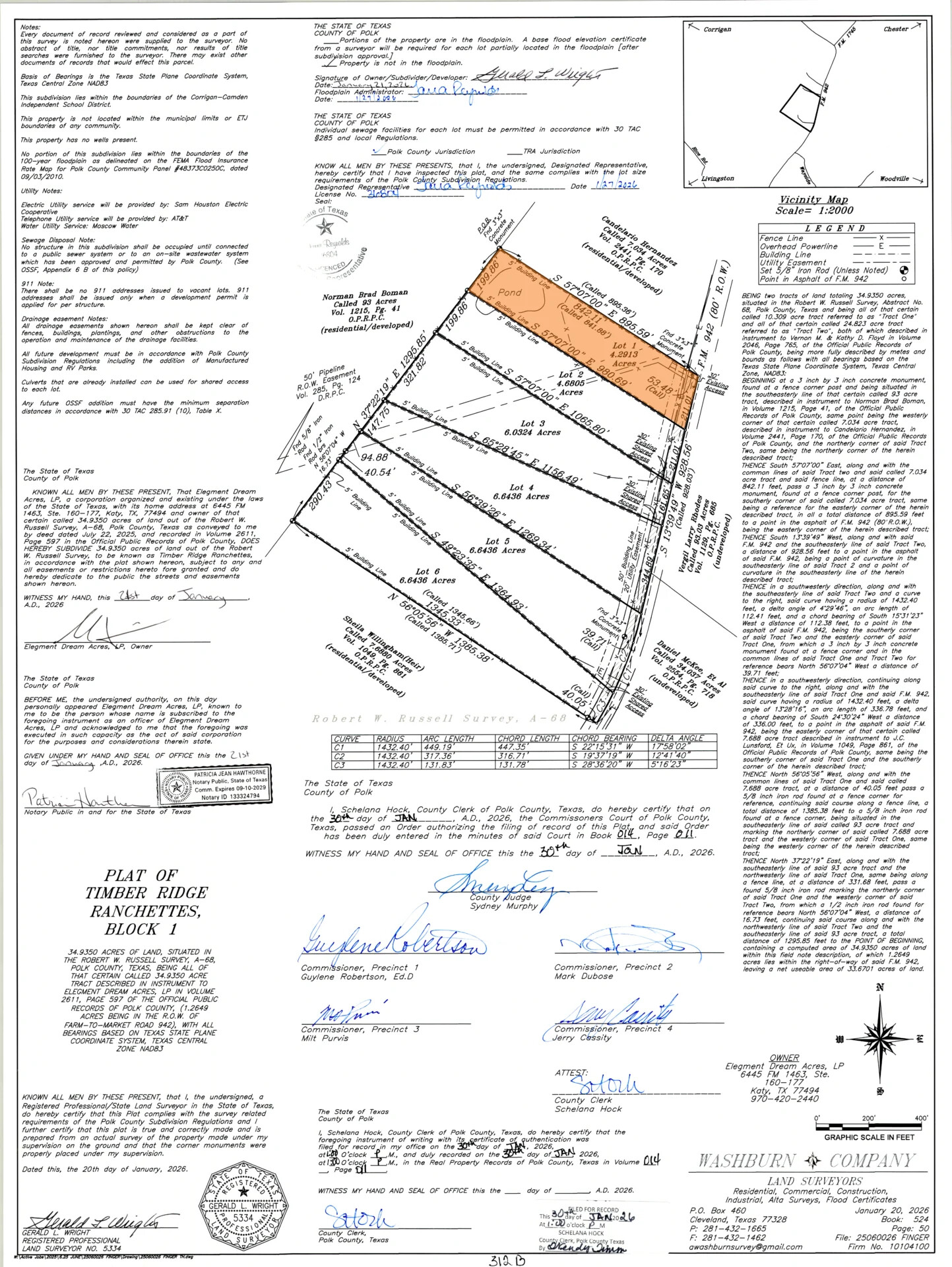 The overall subdivision was just approved in Commissioner's Court as of February 2026 and the Plat has been incorporated into the County's official records.
