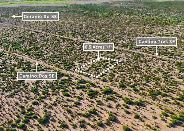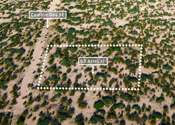 The lot has dirt road access via Camino Dos SE, making it reachable by vehicle.