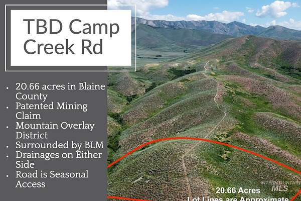 Off-grid adventure meets mountain serenity! Just a short drive from Hailey via scenic Croy Canyon or Rock Creek Road, this 20.66-acre patented mining claim sits atop a stunning ridgeline with sweeping views of South Blaine County. Flanked by natural drainages that attract abundant wildlife and surrounded by BLM land used for seasonal sheep grazing, this property is a dream for nature lovers, hunters, or anyone looking to unplug. Ride for miles on nearby fire roads or relax in total seclusion. Located in the Mountain Overlay District (MOD), the property may allow for a 1,200 SF residential structure-buyers should confirm with Blaine County. Whether you're looking to glamp in style or build a self-sufficient retreat, the possibilities are wide open. Fully fenced to keep out grazing sheep. Search the address on YouTube for a full video tour!