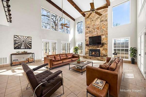 Discover this enchanting, recently renovated 4-bedroom residence nestled in the serene setting of 9 plus beautifully wooden acreage with your own golden pond & space for your RV. Designed for both comfort and style, this property offers a harmonious blend of modern living & timeless charm. Step inside to be greeted by a beautifully renovated interior with impressive staircase. The expansive living area boasts natural lighting, towering wood beam cathedral ceilings, floor to ceiling stone fireplace & wet refreshment center that is perfect for hosting friends & family. The chef's kitchen is a standout feature, showcasing sleek quartz countertops, ample custom cabinetry, updated designer style hardware & lighting, state-of-the-art stainless steel appliances ready for culinary adventures & opens onto a lovely breakfast area. Host your family gatherings in this beautifully detailed dining area. The primary suite is a private retreat, complete with a generous walk-in closet & recently updated spa style bathroom. The remaining three bedrooms are generously sized, offering comfort & flexibility for various needs. Work from home in your private office with custom built-ins. 2nd living area will be a hit with family and friends. Covered balconies provide favorite spots to enjoy vistas & views with your favorite cup of coffee. Your family will love gathering around the pond to fish or meandering on trails among towering trees - true country living at its best! Room to roam and grow here. Located only minutes from East Texas A&M University, restaurants, shopping and entertainment. You don't want to miss this one! Must see!
